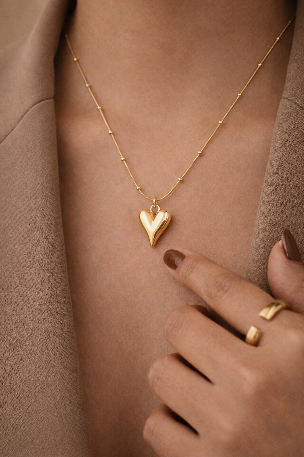 Anti-Tarnish, Stainless Steel, Dainty Everyday Valentine’s Romantic Heart Shaped Necklace for Women & Girls